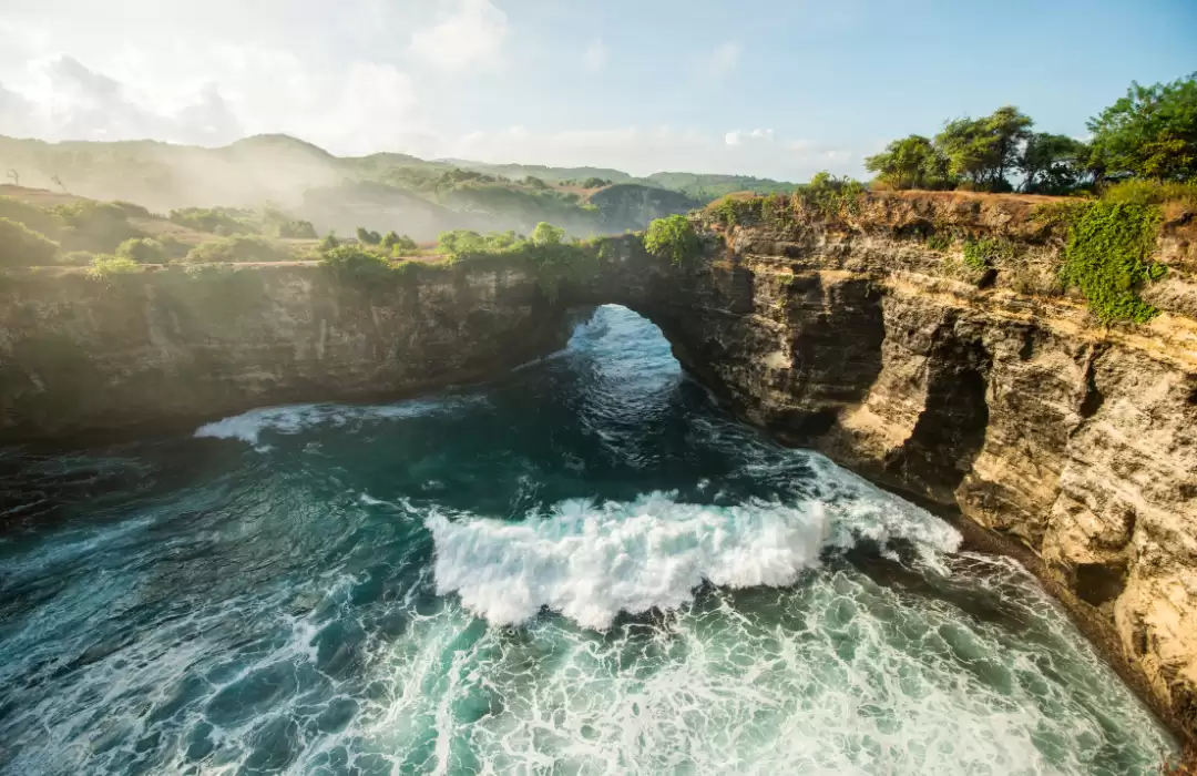 Broken Beach, or Pasih Uug, is a popular tourist destination in Nusa Penida, Bali. It is known for its unique coral cliff formation with a large hole in the middle, creating a stunning ocean view. Visitors can enjoy the natural beauty, photography, and the incredible serenity.