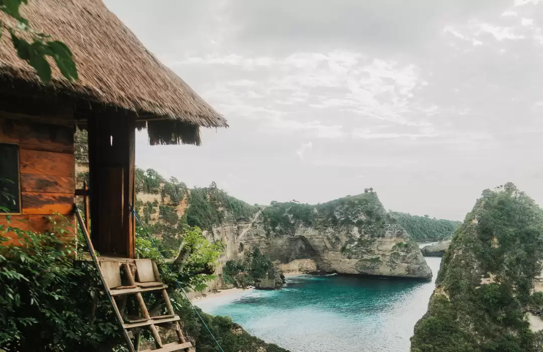 Mollenteng Tree House in Nusa Penida, Bali, offers a unique experience of staying in a tree house with stunning views of the ocean and cliffs. Located near Atuh Beach and Diamond Beach, this place is popular for taking pictures and enjoying the serene atmosphere and stunning natural panorama from above.