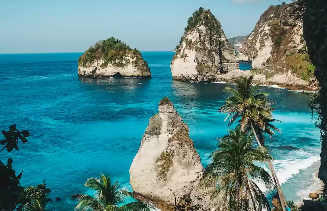 Kelingking Beach is an iconic destination in Nusa Penida, Bali, known for its cliff formations that resemble the spine of a T-Rex. With spectacular ocean views and beautiful white sand, visitors can enjoy hiking to the beach or simply admire the panorama from the top of the cliff.